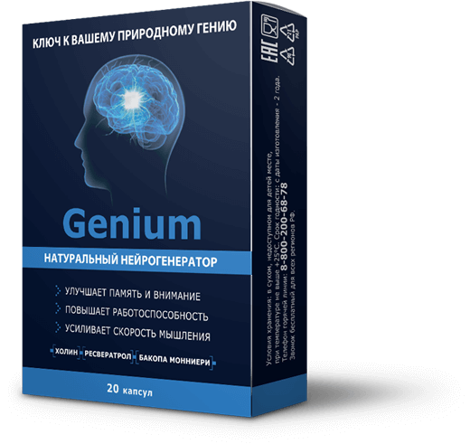 «GENUIM ("Гениум") - это российский препарат, который способен в короткие сроки улучшить память, облегчить обучаемость, усилить умственную деятельность, повысить стойкость мозга к чрезмерным нагрузкам.